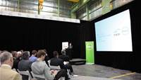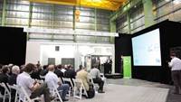 Today, Tier 5 demonstrated how the various pieces of a kit - an 'IT PAC' of servers, an air handling pack for cooling and a UPS pack for redundancy - could be shifted in and out of place via a small crane and rails running along the factory floor.