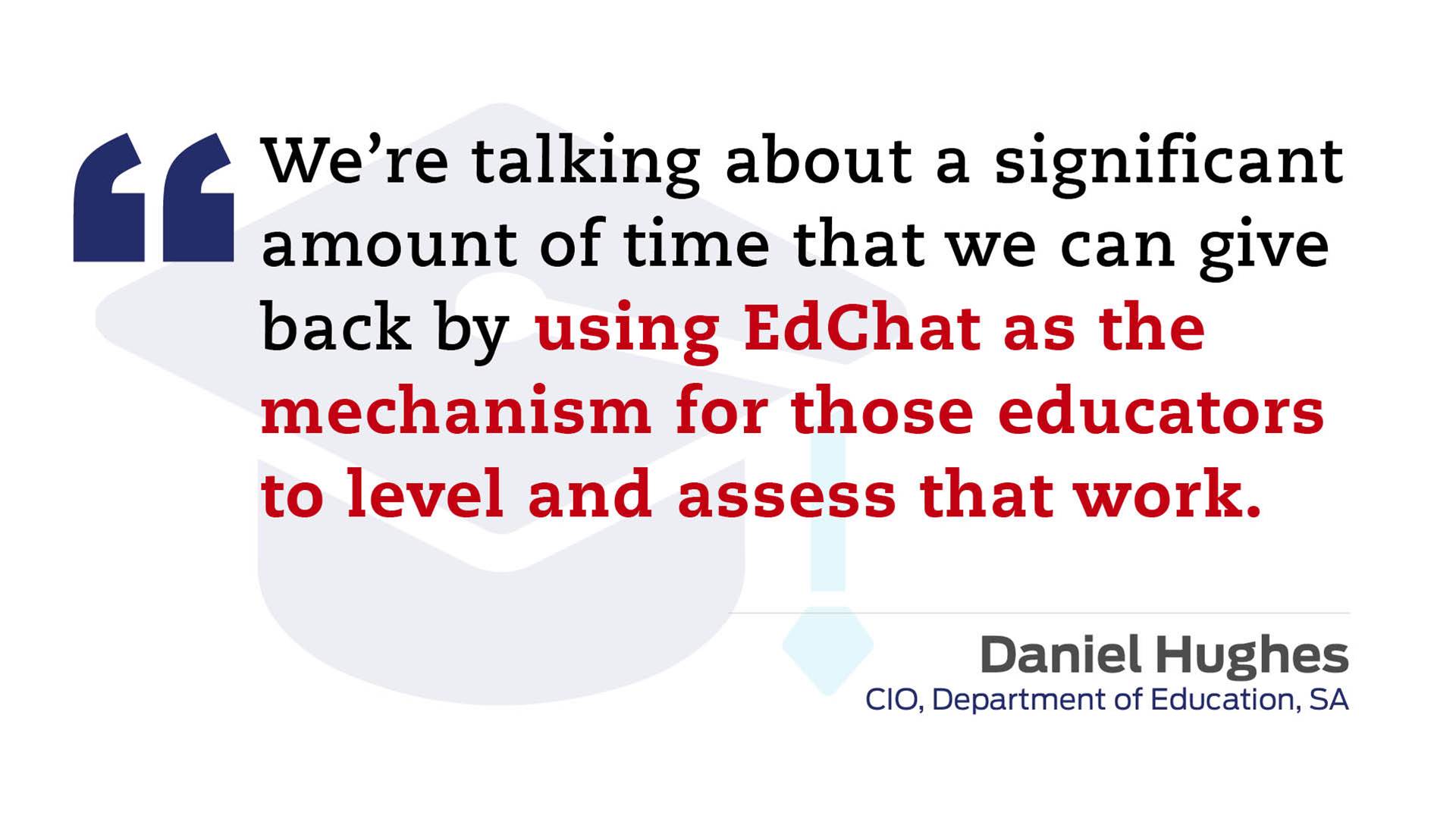 “We are not saying AI will take away the role of a teacher, but if it can simplify administrative tasks and enable educators to focus on more ‘value add’ activities that directly benefit student learning and comprehension, then we think we are on to something.” - Daniel Hughes, CIO, Department of Education, SA