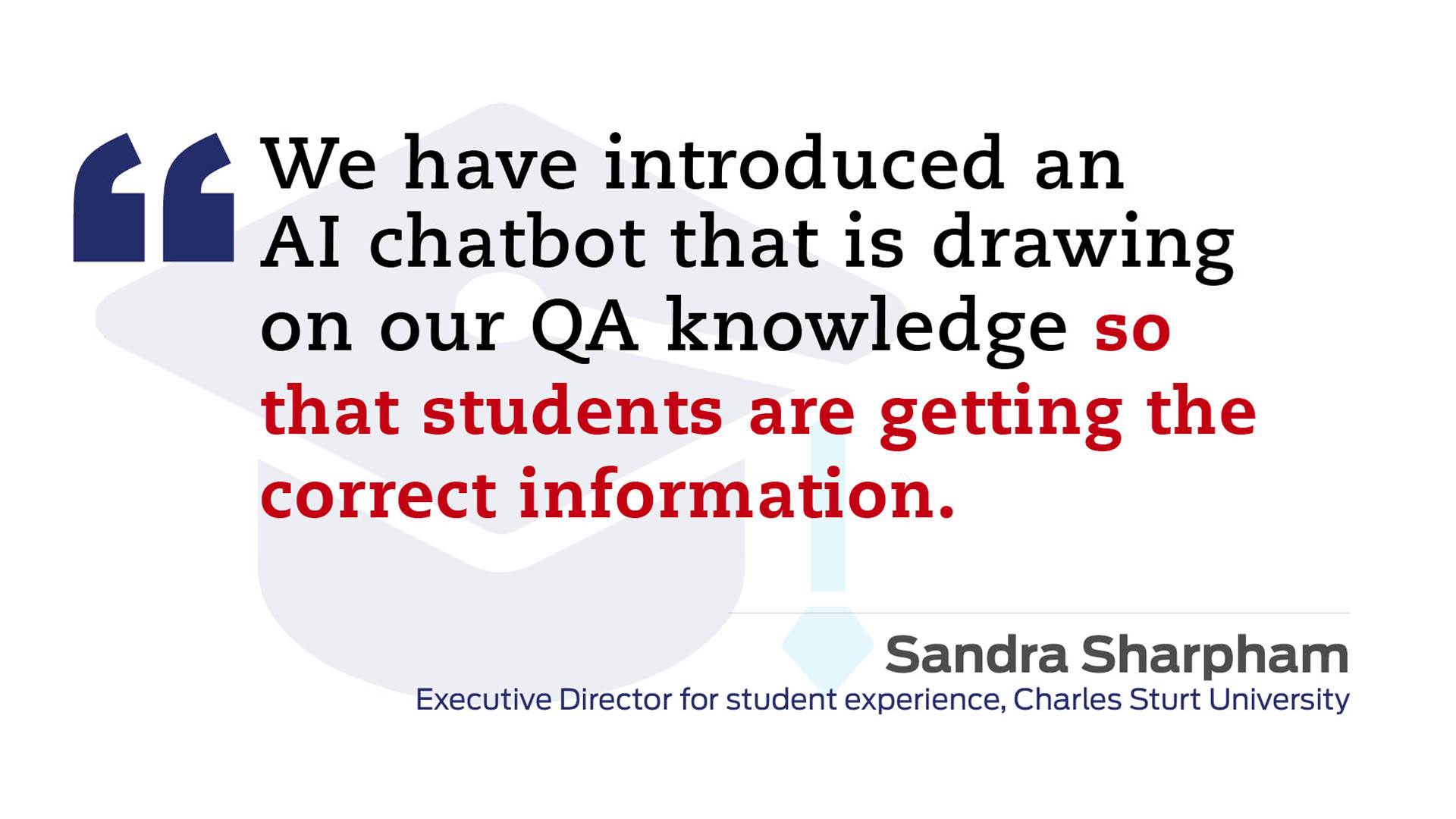 “We've had that in for just under 12 months. When we first introduced it, we saw about 30 percent of queries were coming in after hours. We're now up to over 50 percent of queries coming in outside business hours and getting resolved.” - Sandra Sharpham, executive director for student experience, Charles Sturt University