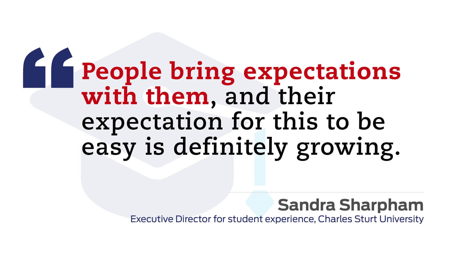 “There's a recognition for us that students are our main customer,” said Sandra Sharpham, executive director for student experience at Charles Sturt University (CSU).
