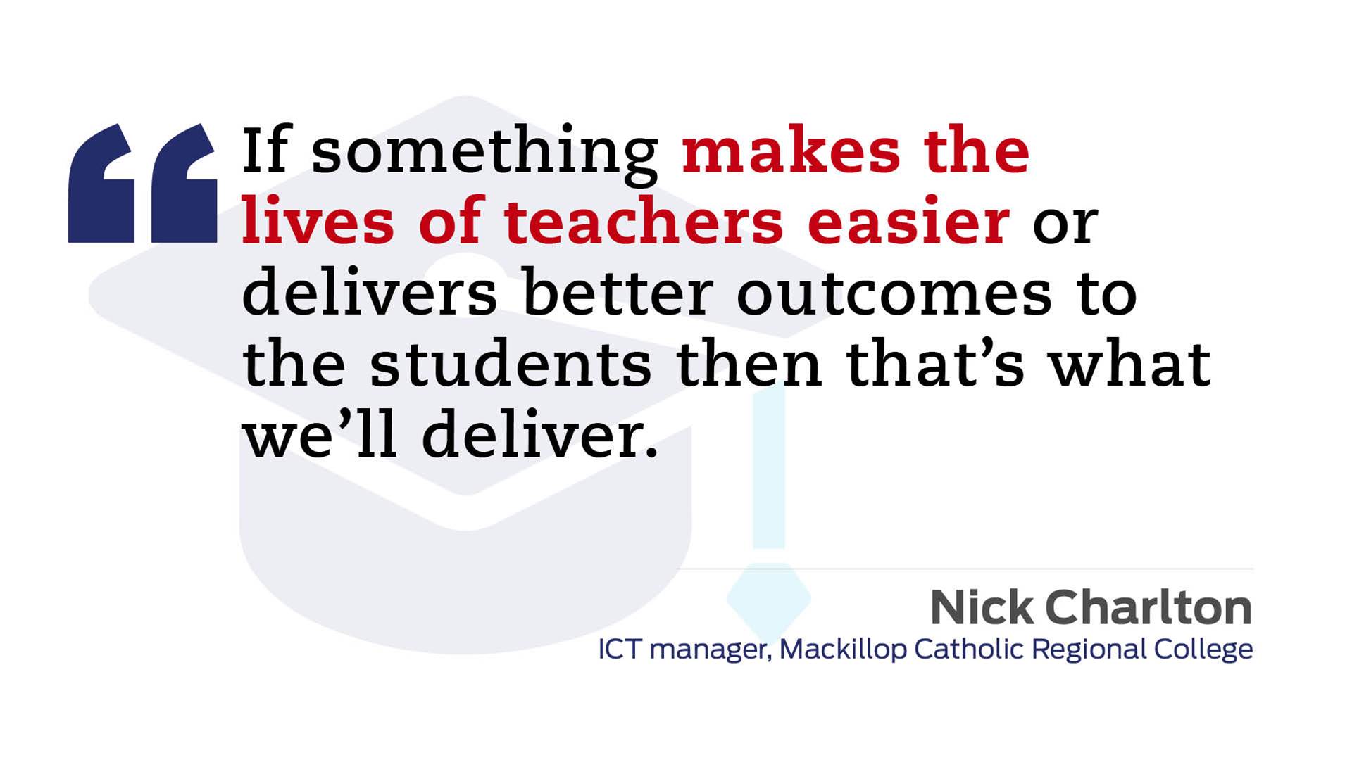 At Mackillop Catholic Regional College in western Melbourne, ICT manager Nick Charlton said the approach to integrating technology into teaching and learning always began by asking what value it would add – ensuring any solution was both impactful and consistent.