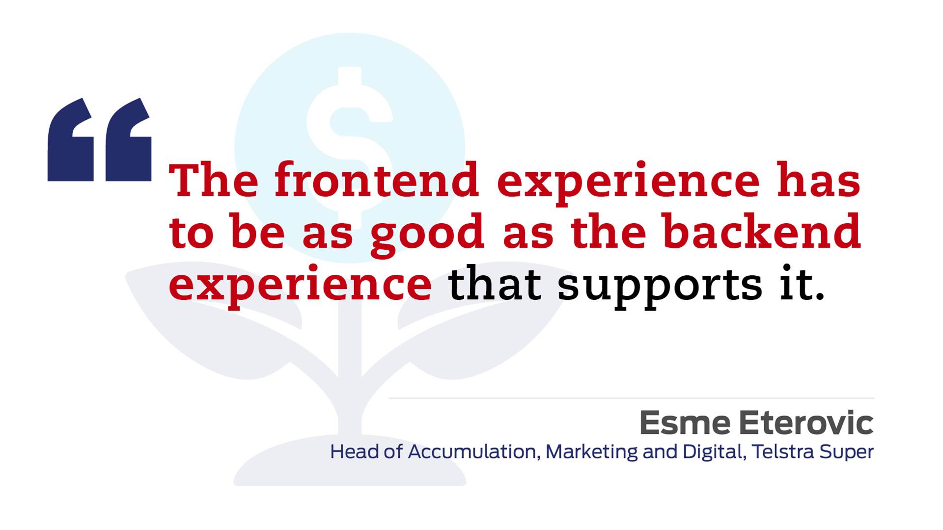 For the head of accumulation, marketing and digital at Telstra Super, Esme Eterovic, technology is a core enabler of both experience and business efficiency, so the key question is how to ensure it straddles both worlds.