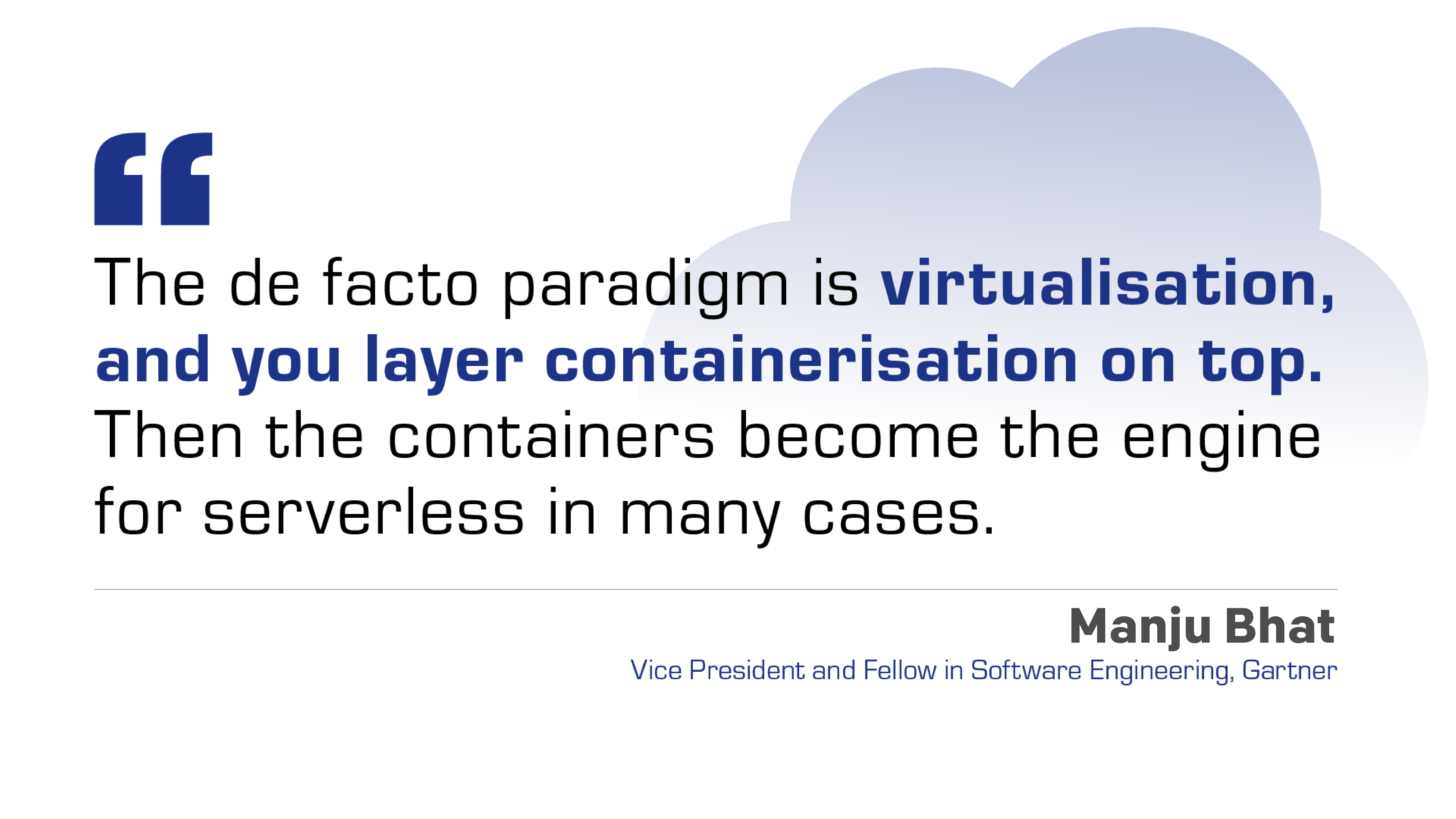 “The de facto paradigm is virtualisation, and you layer containerisation on top. Then the containers become the engine for serverless in many cases.”
