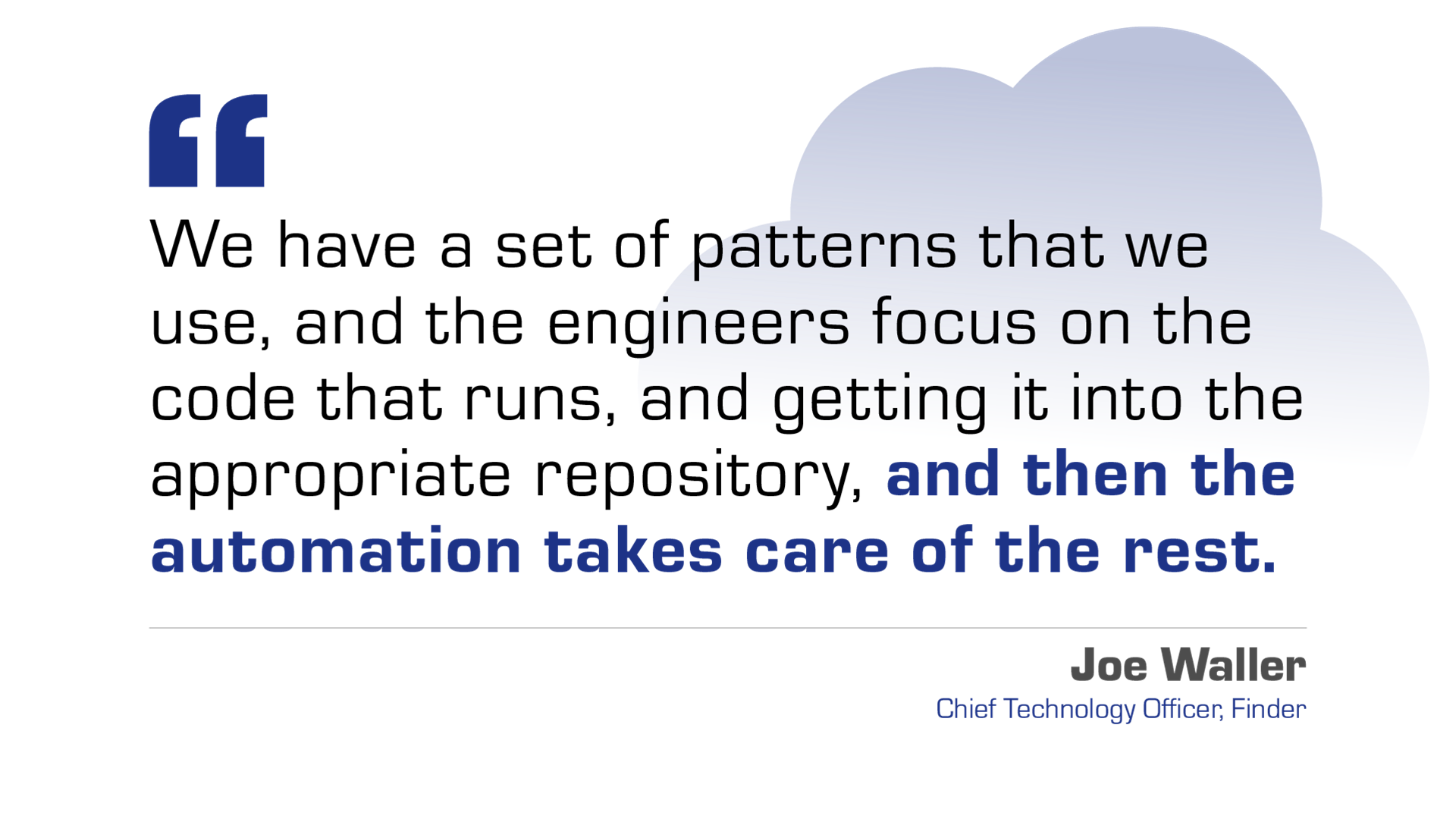 “We have a set of patterns that we use, and the engineers focus on the code that runs, and getting it into the appropriate repository, and then the automation takes care of the rest.”