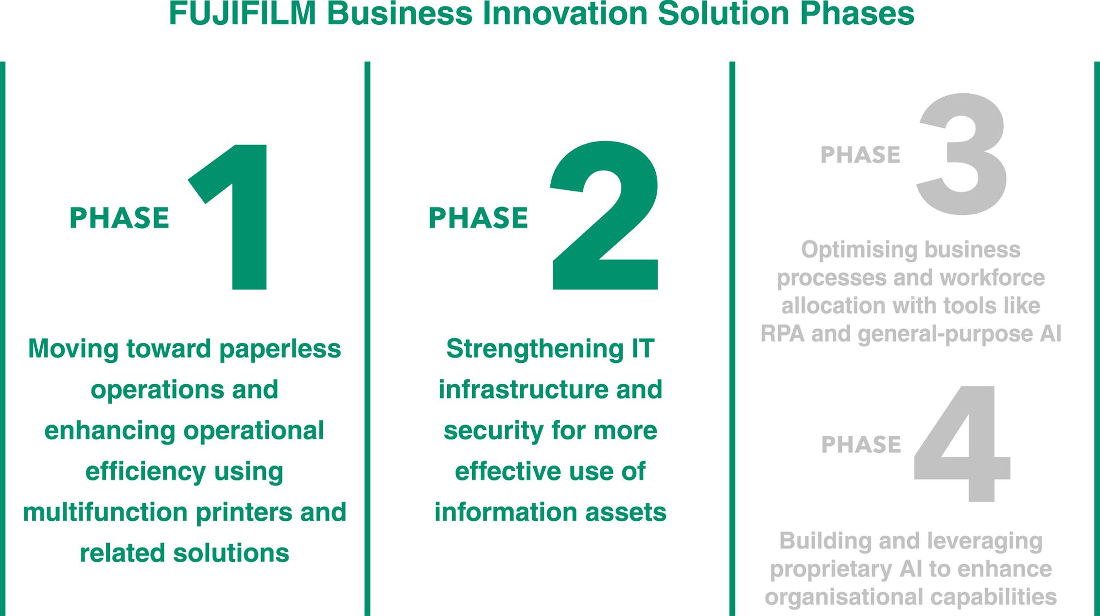 “Each of these phases takes time to implement. They require careful long-term planning, strategic decision-making, and the determination to see it through. That’s exactly what we offer.” FUJIFILM Business Innovation stands out not only for its success in delivering immediate solutions but also for its support as a trusted long-term partner – leading digital transformation and assisting companies in their pursuit of growth.