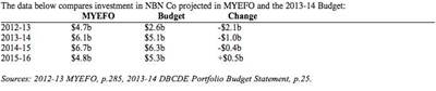 Turnbull kicked off the latest stoush by comparing the Government's planned investment in the NBN in the Mid-year Economic and Fiscal Outlook (MYEFO), released late January, and yesterday's Budget 2013-14.