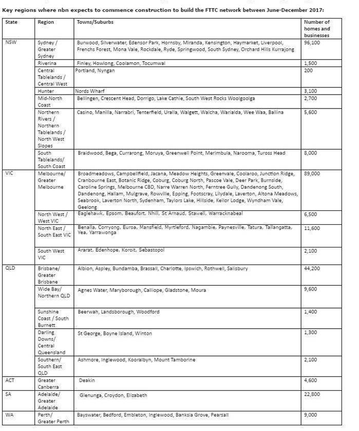 There also big changes in Victoria, where Broadmeadows, Jacana, Meadow Heights, Greenvale, Coolaroo, Junction Ridge, Botanic Ridge, Deer Park, Ferntree Gully, Dandenong, Mulgrave, Laverton, Wyndham Vale, Beaufort, Stawell, Euroa, Nagambie, Koroit and Sebastopol are new to the FTTC footprint.
