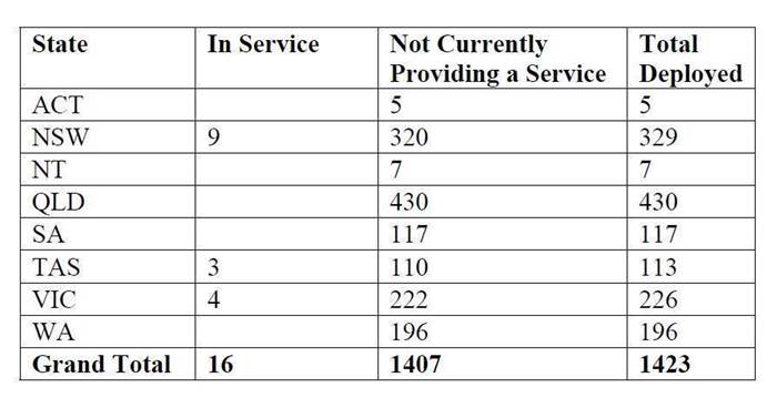 Queensland is the worst affected state, with all 430 deployed micronodes unable to be switched on. NSW isn’t far behind, though it has the most ‘live’ micronodes – nine of the 320 deployed.
