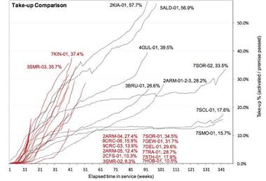 It is unclear exactly how far the take-up rates outlined by NBN Co can be extrapolated across the entire rollout so far.