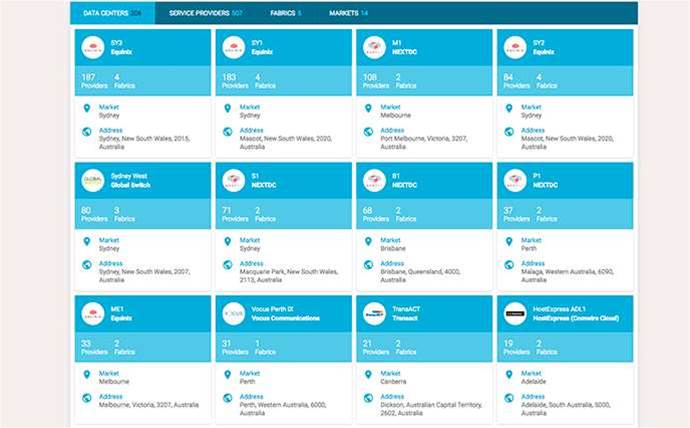 The website lets users work backwards from fabric to find availability of services from the likes of Megaport and Pipe Networks.