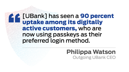 Outgoing Ubank CEO Philippa Watson told a recent summit that while it will some time for people to understand passkeys technology, UBank "has seen a 90 percent uptake among its digitally active customers, who are now using passkeys as their preferred login method.”
